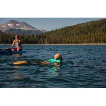 Ein schwimmendes Spielzeug mit Seilgriff für Wurf- und Zerrspiele im Wasser und auf festem Boden.